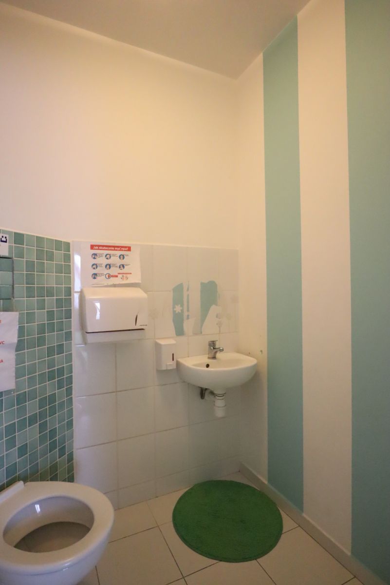 Lokal przeszedł remont w 2024r. Okna PCV, na podłogach panele i wykładzina dywanowa, w toaletach terakota.