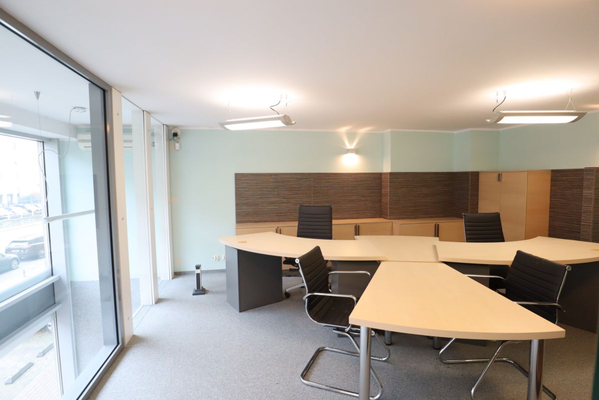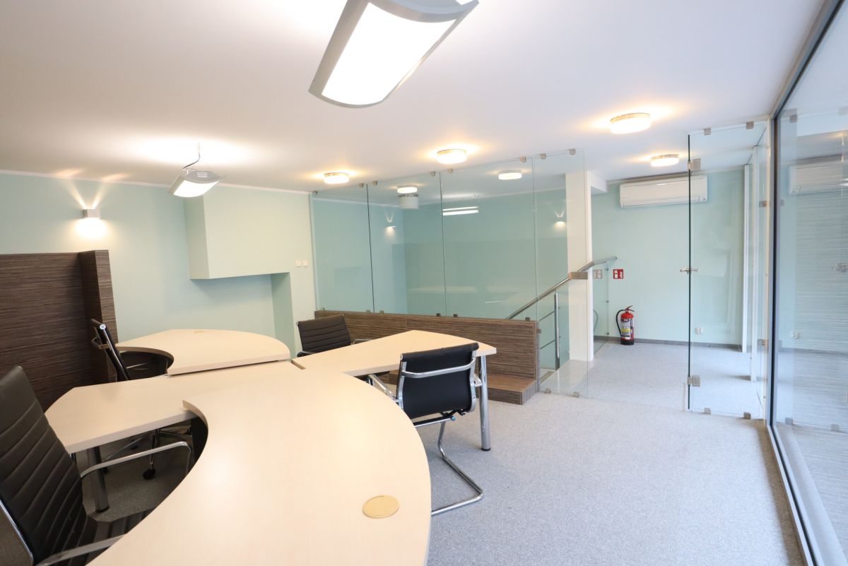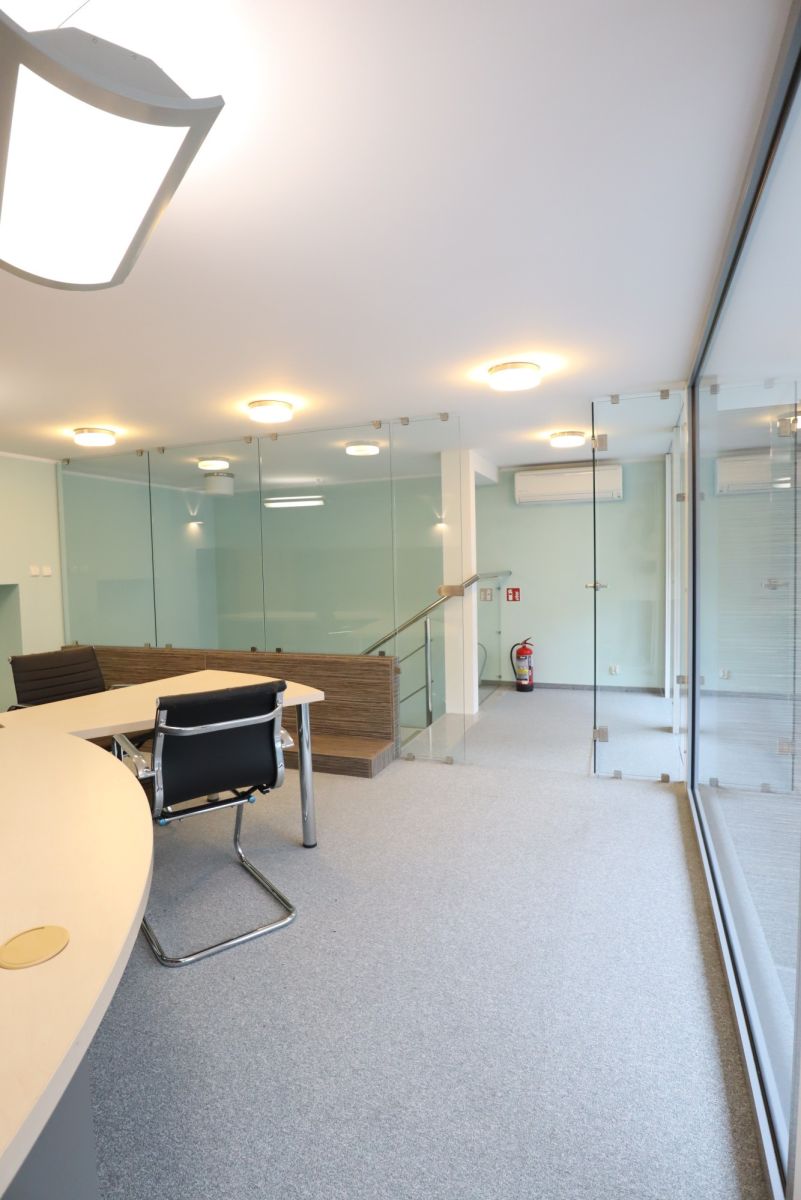 Część usługowa na parterze posiada dużą witrynę od ulicy, wyposażona jest w salę sprzedażową z oszklonym przedsionkiem oraz toaletę. Na piętrze znajduje się pomieszczenie typu open space.
