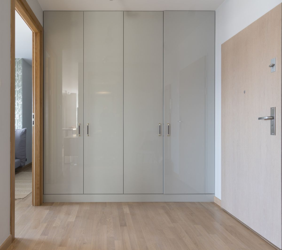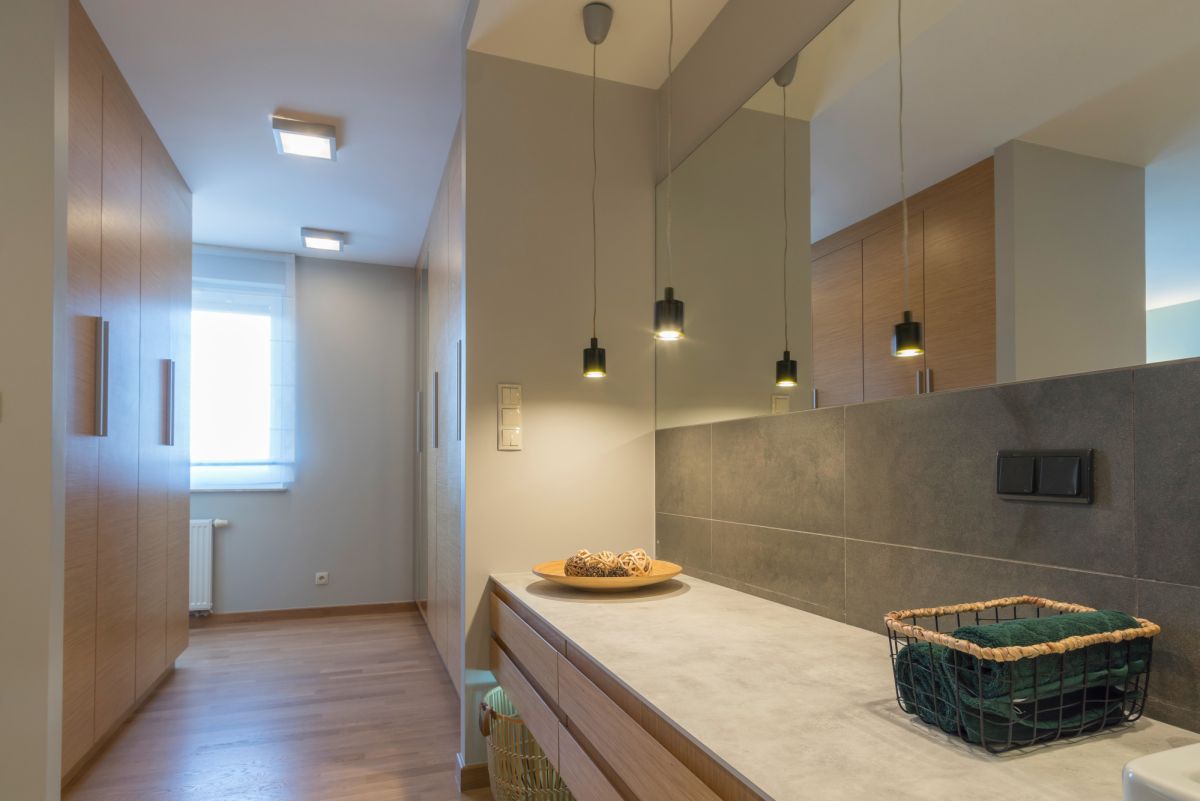 Wygodny komunikacyjnie hol (ok.6,50m2) zabudowany jest dużą szafą garderobianą. W zabudowie tej znajduje się również pralka.